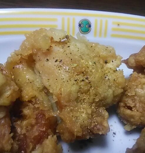 風来坊の万能スパイスをふりかけて食べると途端に美味しい唐揚げに変身しました。これ1本であなたも料理名人とパッケージに書いてあるのも納得できました。この調味料、ホントに風来坊のタレとスパイシーな胡椒のバランスが表現された嬉しい一品です。気になる方は是非お試し下さい。超お勧めです。