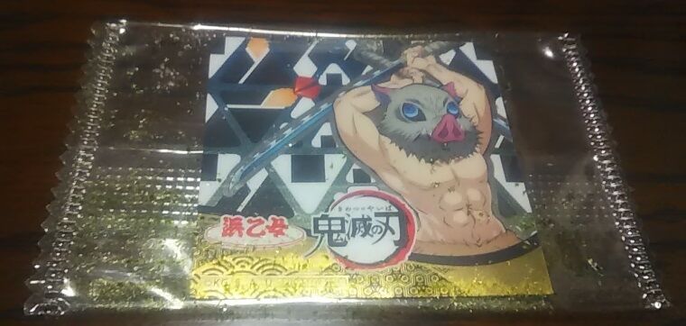 2021年06月01日 浜乙女「岩塩(塩付 おにぎり のり)鬼滅の刃コラボ」白いごはんを、もっとおいしく(コラボなしでも元々、好きで買ってます!) 我が家で定番、おにぎりに使用している塩のり(味付のり)が鬼滅の刃とコラボしてたので紹介してみます。株式会社 浜乙女名古屋市中村区名駅四丁目16番26号開封すると、こんな感じです。枚数もそれなりに多くて厚みがあり、おにぎりを巻くのに適度な大きさなのも使い勝手が良いです。付録です。子供は全然、欲しがりませんでした。。。それにしても鬼滅の刃は色々とコラボが多くてスゴイですね。今回、紹介した塩のりは、随分と前から我が家では、おにぎり用ののりとして重宝してます。もう美味しさ的に一択という状態です。さらに夏場には塩の補給にも良いと思いますので超お勧めですよ。気になった方は是非、お試し下さい。